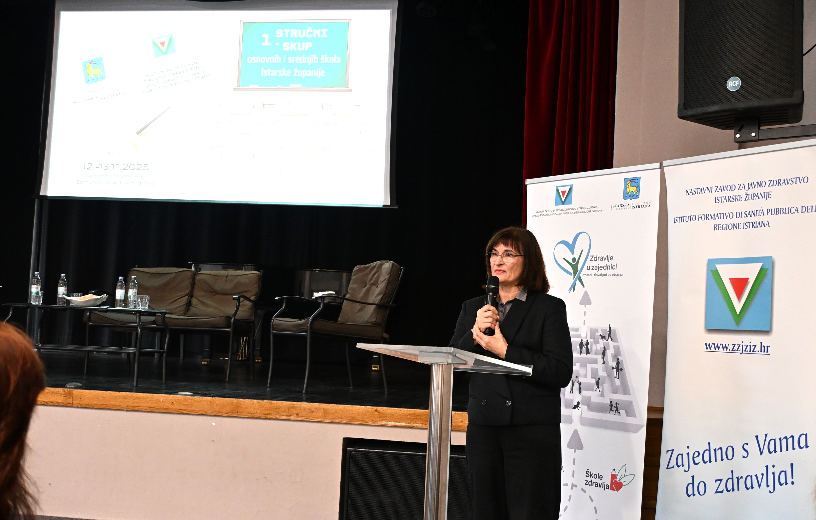 U prostorijama Zajednice Talijana Pula - Circolo jutros je otvoren 1. stručni skup osnovnih i srednjih škola Istarske županije, u organizaciji Nastavnog zavoda za javno zdravstvo Istarske županije i u suradnji s Istarskom županijom, u sklopu zajedničkih aktivnosti na promicanju zdravih životnih stilova, dobrobiti i očuvanja zdravlja djece i mladih kroz projekt "Škole zdravlja“. U uvodnom dijelu okupljenima se prigodnim riječima obratila i ujedno otvorila skup zamjenica župana Gordana Antić, dr. med., a događaju je prisustvovala i pročelnica Upravnog odjela za zdravstvo i socijalnu skrb Davorka Maras - Tkačuk.