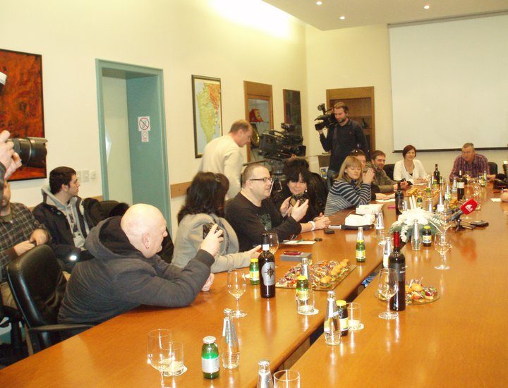 Istarski župan Ivan Jakovčić i predsjednik Skupštine Istarske županije Dino Kozlevac održali su u utorak, 27. prosinca 2011. konferenciju i prigodno druženje s novinarima.